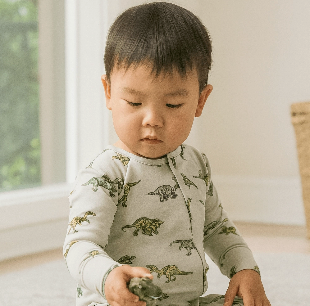 Sweet Bamboo long-sleeved gray convertible romper for babies, with a visible two-way zip feature.