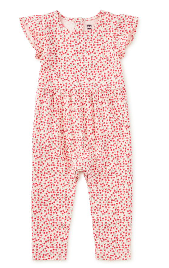 Tulip Sleeve Baby Romper - Mini Rose