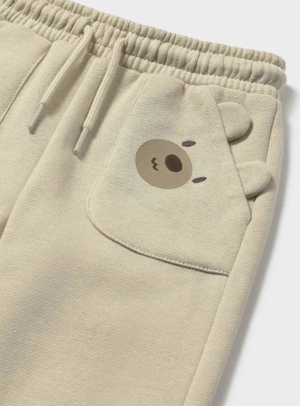 Featuring an adorable bear applique on both the front and back pockets, these joggers add a charming touch to any outfit. The elasticated waistband includes an adjustable drawstring, allowing for a customizable and secure fit as your child grows.