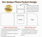 Each beautifully illustrated page features a delightful lift-the-flap surprise, revealing five hidden photo pockets for: Mama, Dada, Grandma, Grandpa, & Family Photo or Child. What Makes This Book Special: