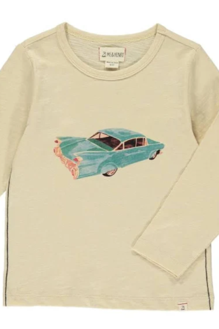 Let your child take a trip back in time with this groovy Beige Classic car Cherokee Raglan. Printed tee. Made with soft, breathable cotton. This vintage car themed tee is sure to drive your child wild with excitement!