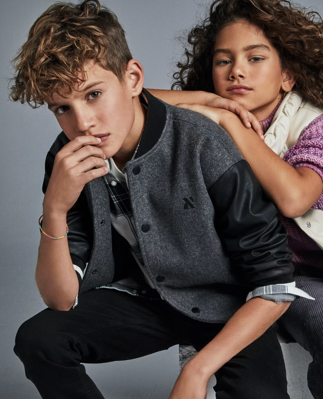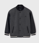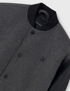 Dark Grey Bomber Jacket with Black Faux Leather Sleeves