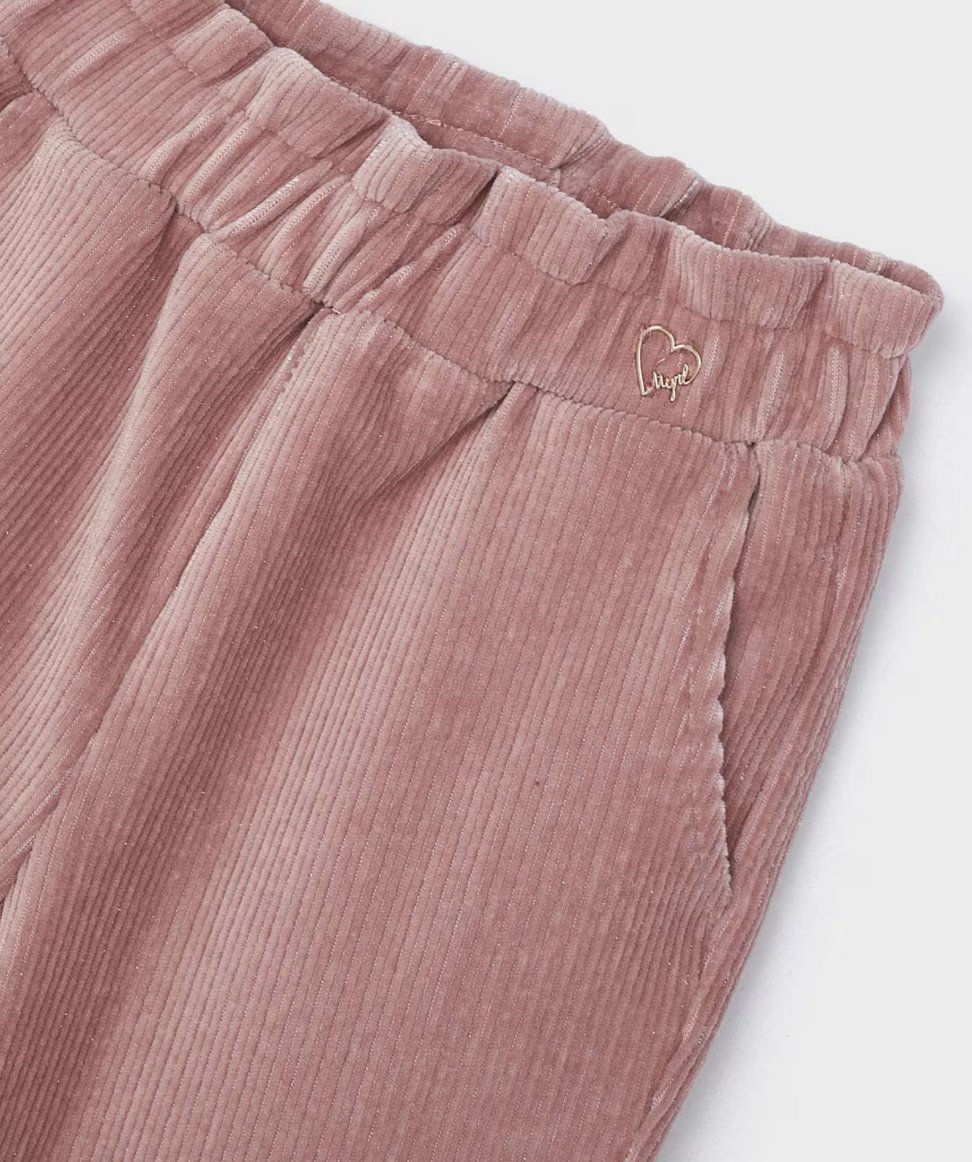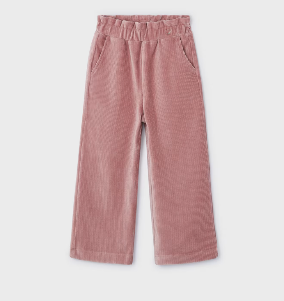 These flared pants for girls feature a wide hem for a trendy silhouette. Designed with an adjustable elastic waistband with buttons for a customized fit, they are crafted from soft, warm corduroy fabric for ultimate comfort. Functional front pockets add practicality, making them a stylish choice for any occasion.