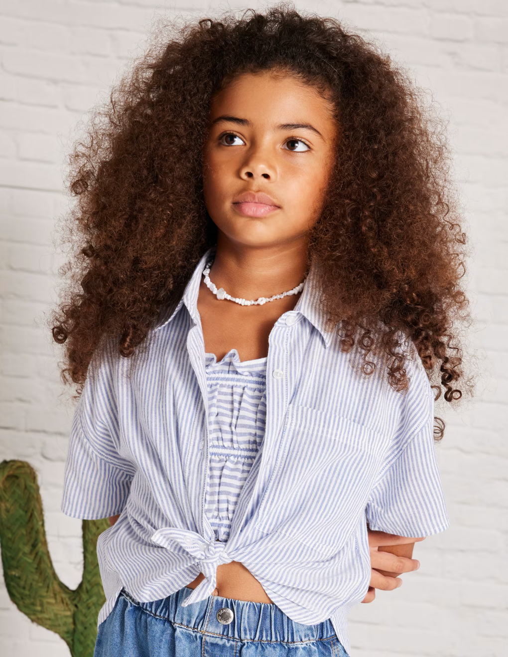 Embrace effortless style with this two-piece set. The versatile button down short blouse and camisole set features a classic striped design in blue and white. Look effortlessly chic and put-together for any occasion.