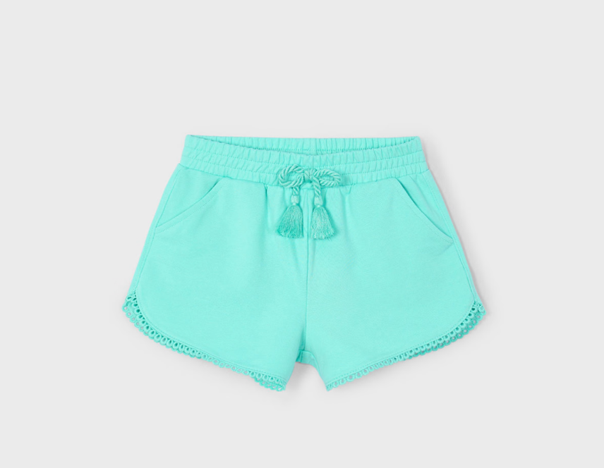 Constructed with a drawstring waist and eyelet detail at the hem, these shorts are made from a soft blend of 95% cotton and 5% Elastane, featuring convenient pockets for added functionality.