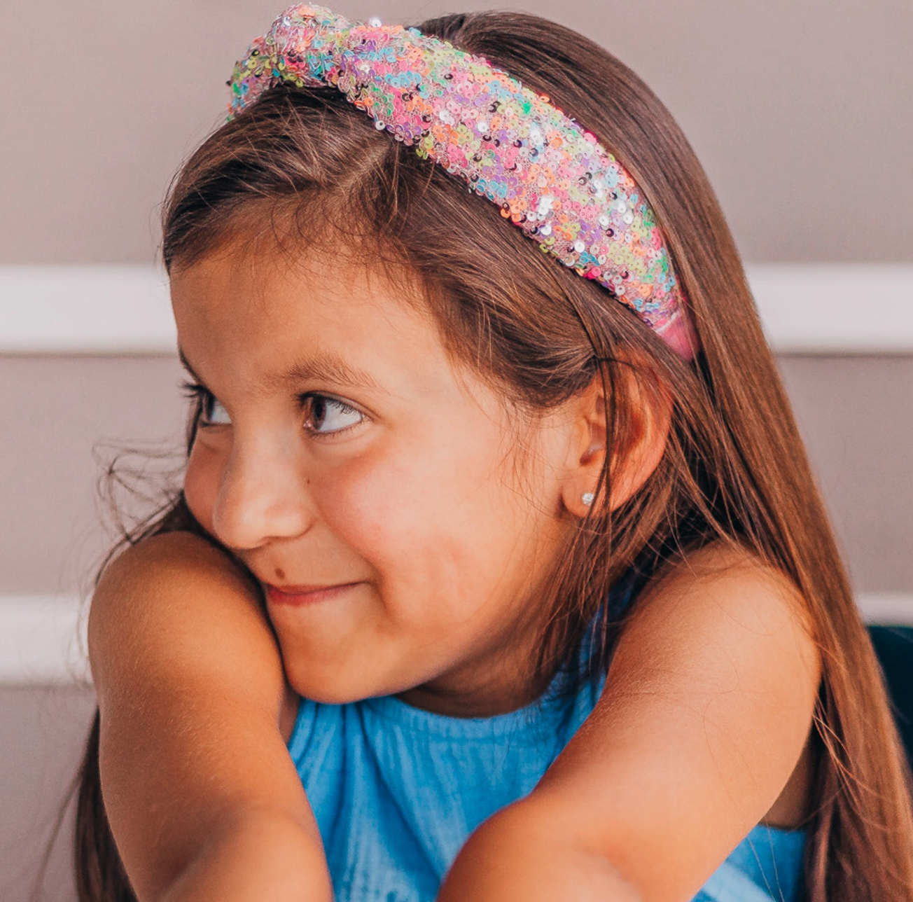 • Kids rainbow sequin knot headband