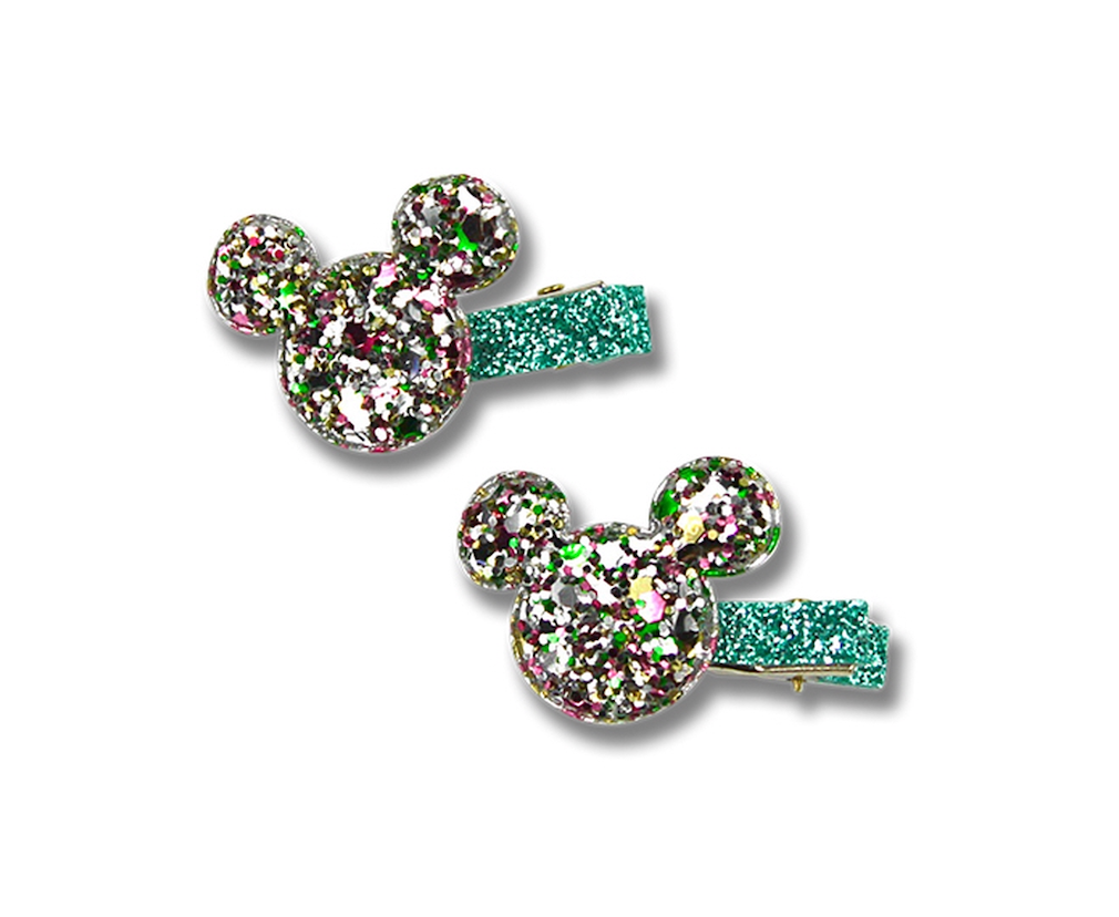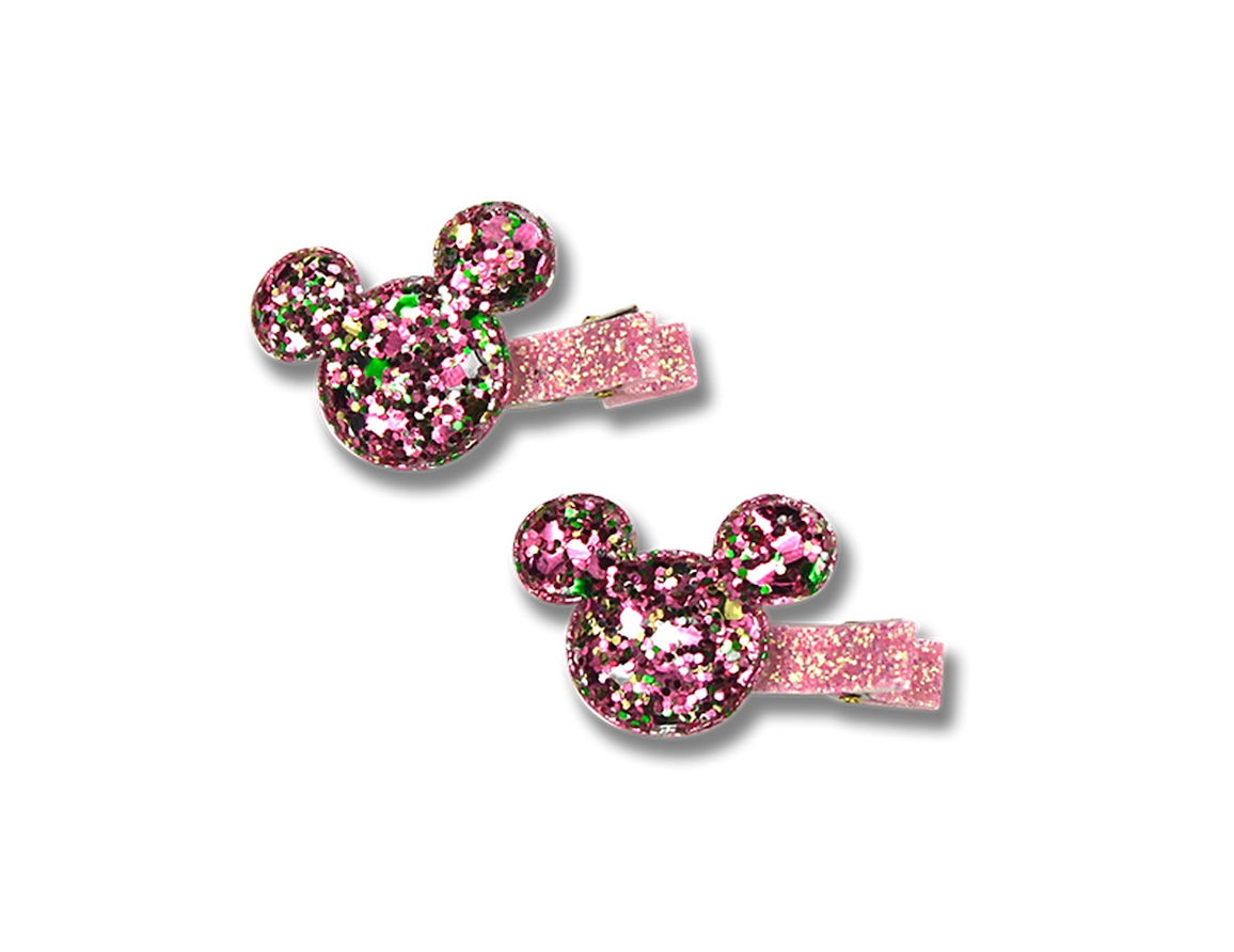 Pair of glitter Minnie Mouse Hair clips by Milk & Soda.