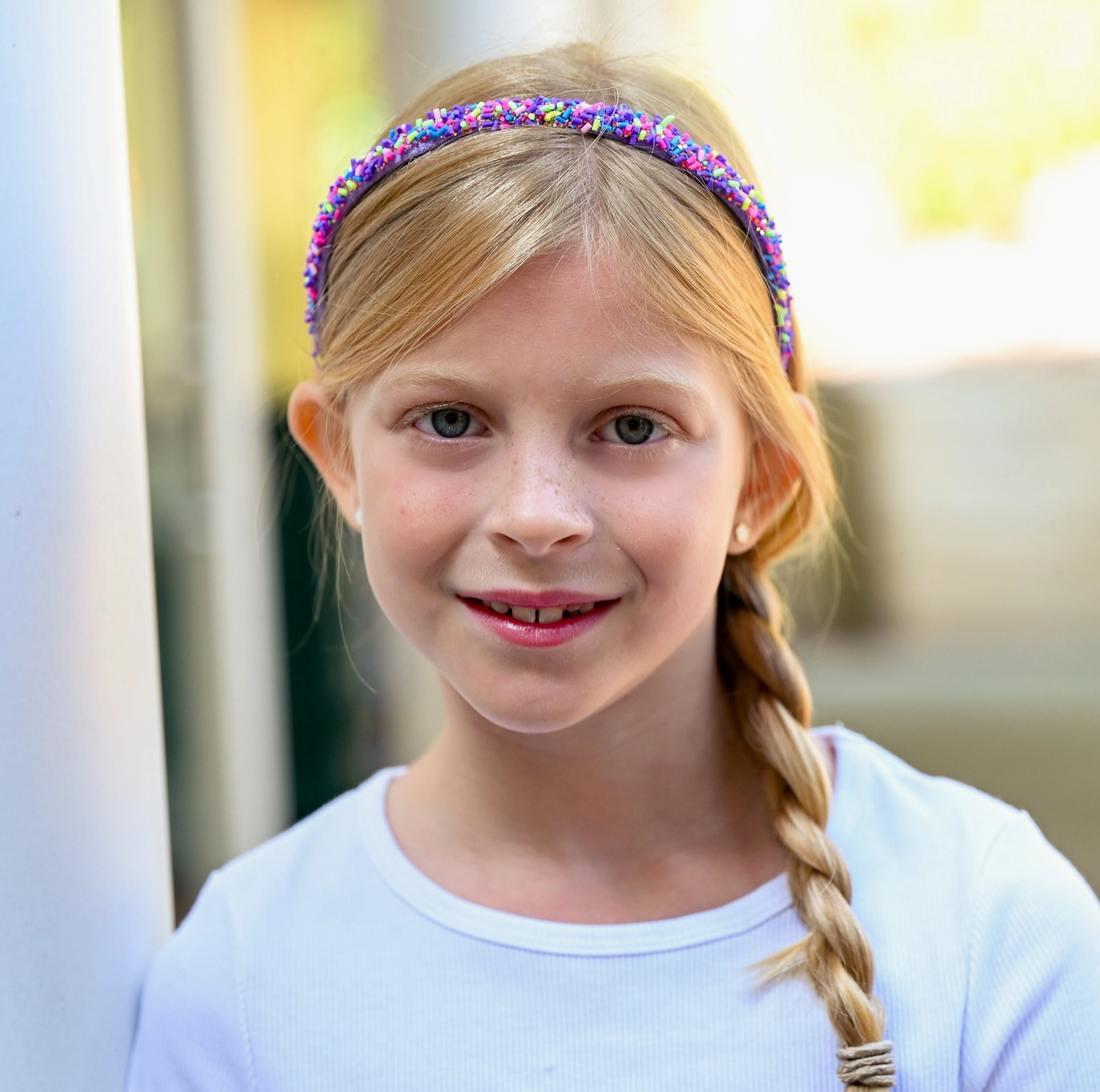 Thin 0.5" width headband made with chunky polymer clay sprinkles