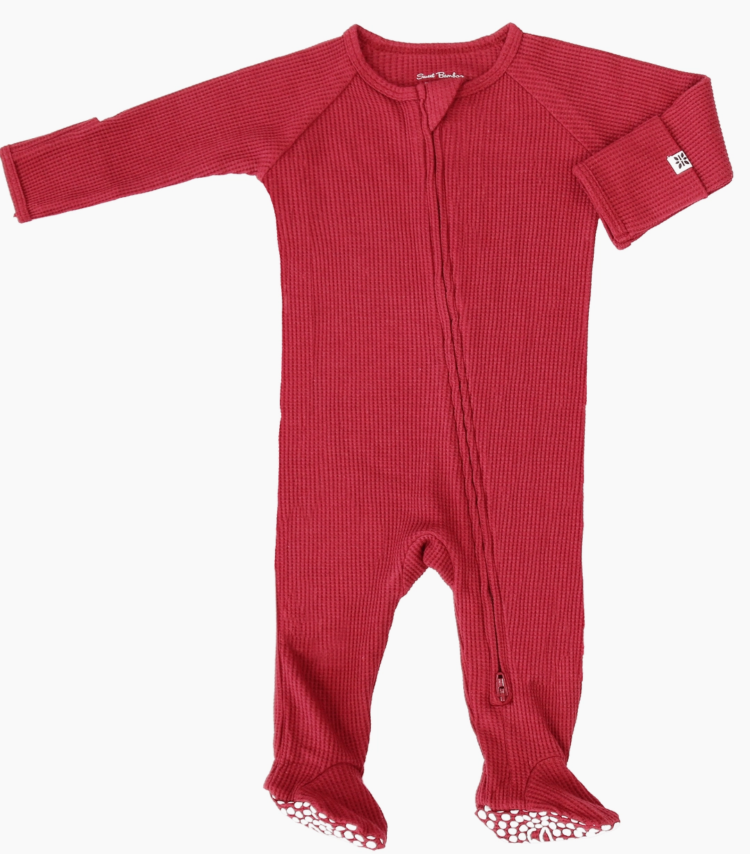 This yummy footie is equipped with a smooth 2-way zipper, silicone grips on the foot pads and fold-over handcuffs. Plus our silky-soft fabric hugs in all the right places to show off those baby curves.