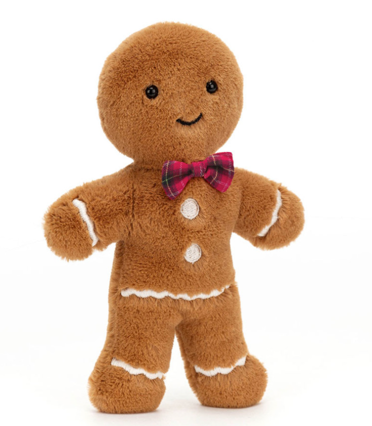 Jolly Gingerbread Fred may have hopped straight out of the tin, but this guy's always looking smart! In soft golden biscuit fur with scalloped stitch icing, embroidered buttons and a red tartan bow, Fred is a forever festive friend!