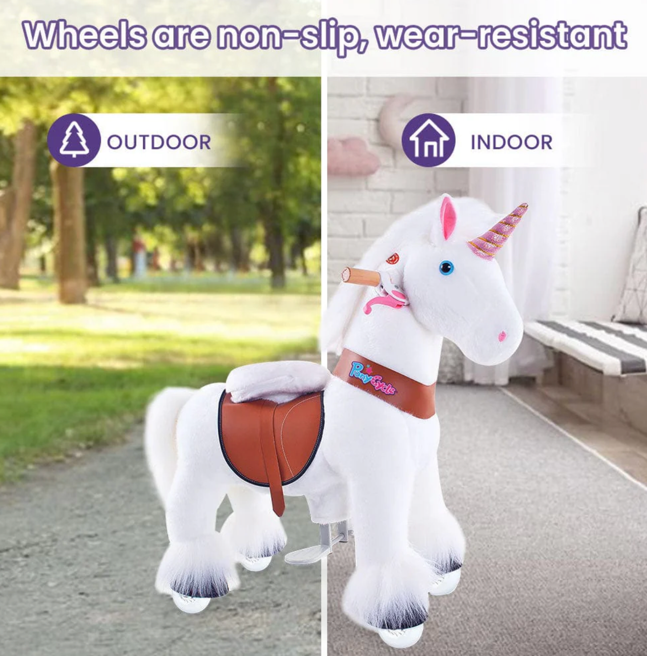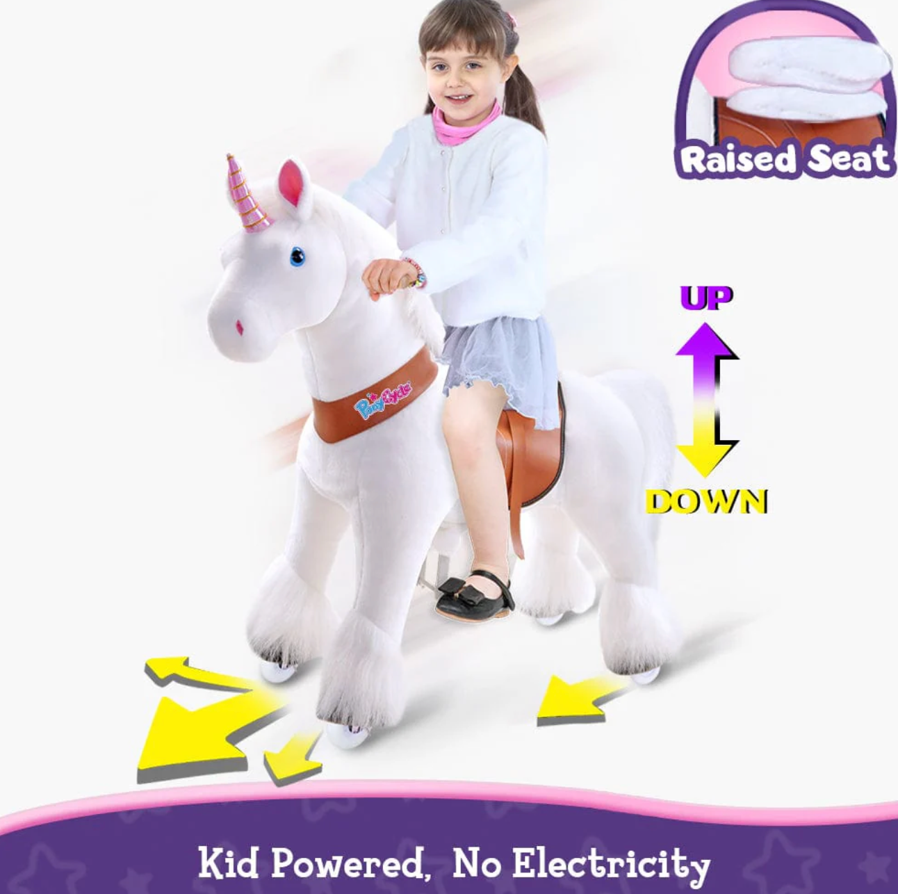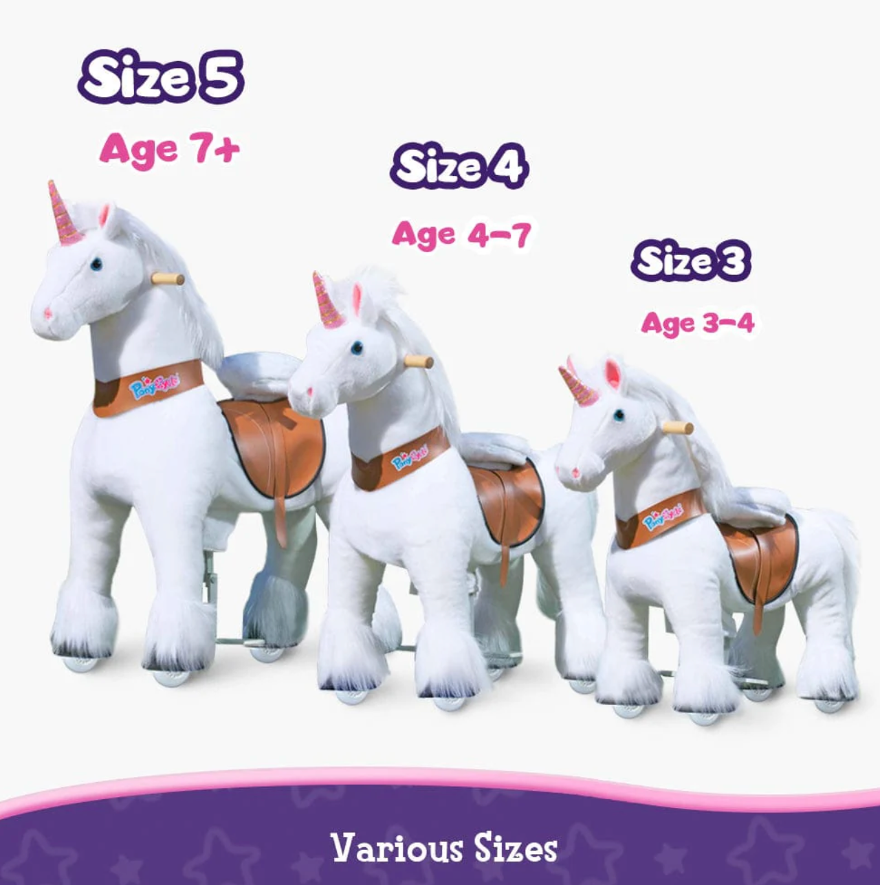 Ride-On White Unicorn for ages 3-4 years, 4-7 years and 7 years and up.