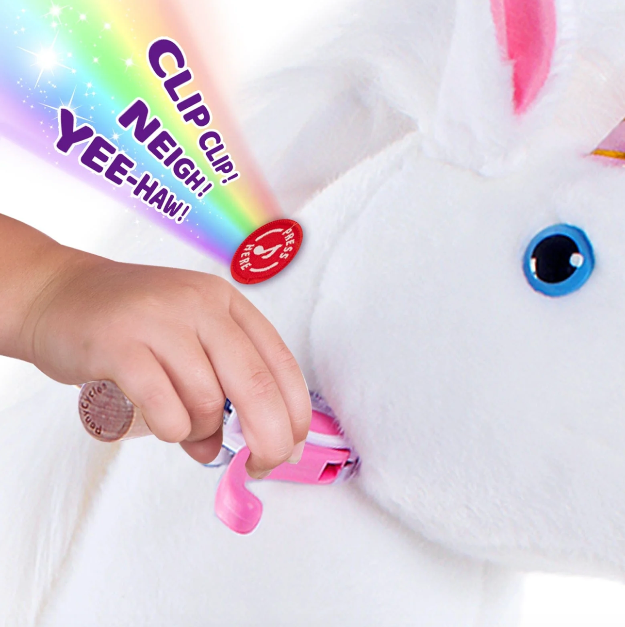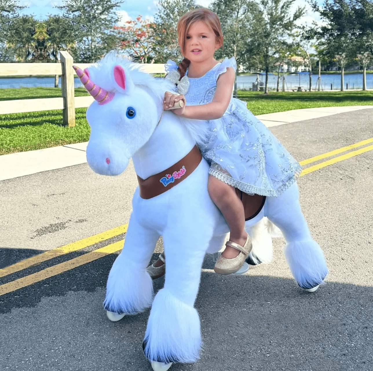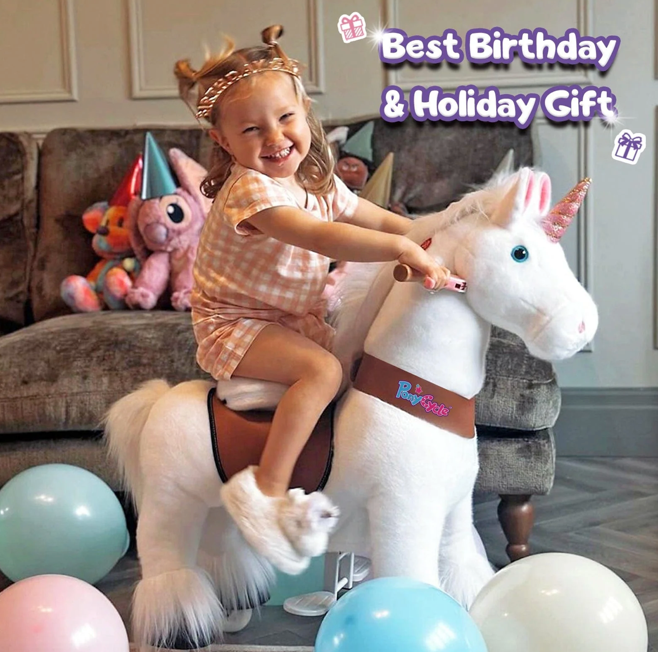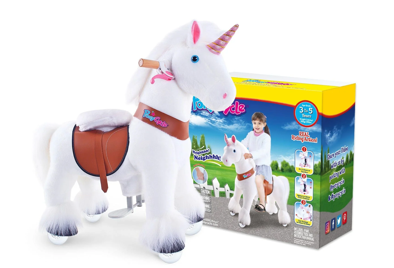 Ride-On White Unicorn for ages 3-4 years, 4-7 years and 7 years and up.