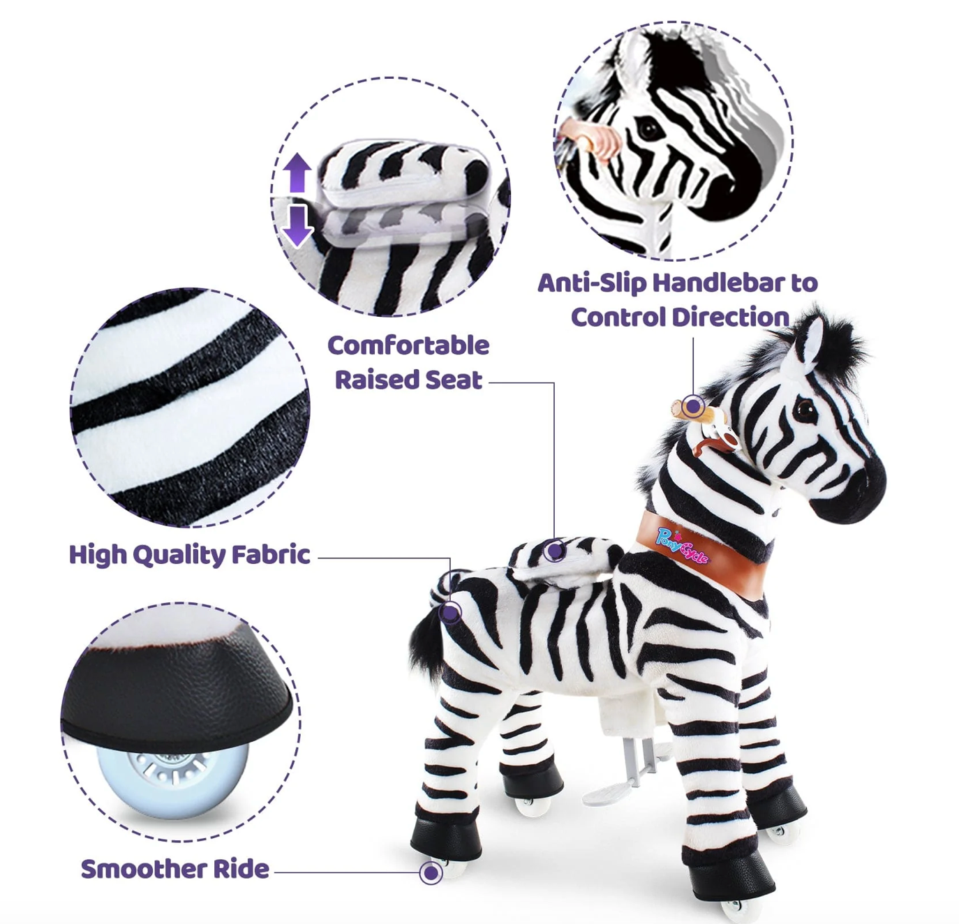 Ride-On Zebra for ages 3-4 years and 4-7 years.