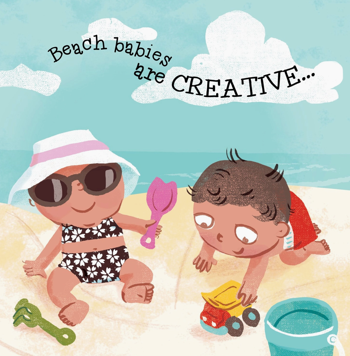 Watch out! Here come the beach babies, and they are ready to give you a tour of the shoreline in this appealing board book. Spirited and charming images pair with quirky text to introduce young readers to a group of smart, active, stylish, and just plain silly tots while they enjoy a day at the beach. From the seaside to the lakeshore to the riverbank, this educational and entertaining read is as essential to a beach bag as a bucket and sunscreen.