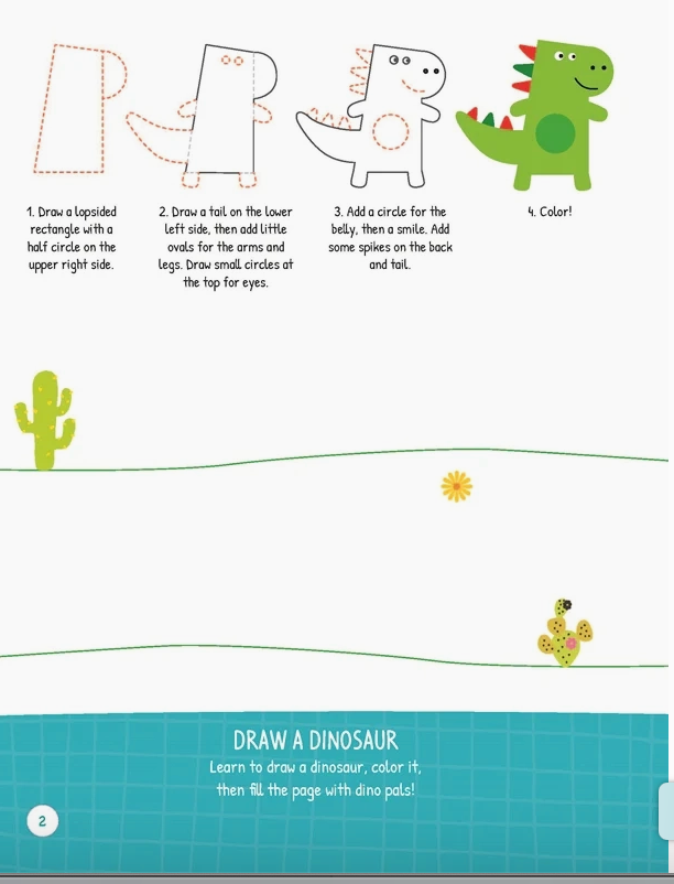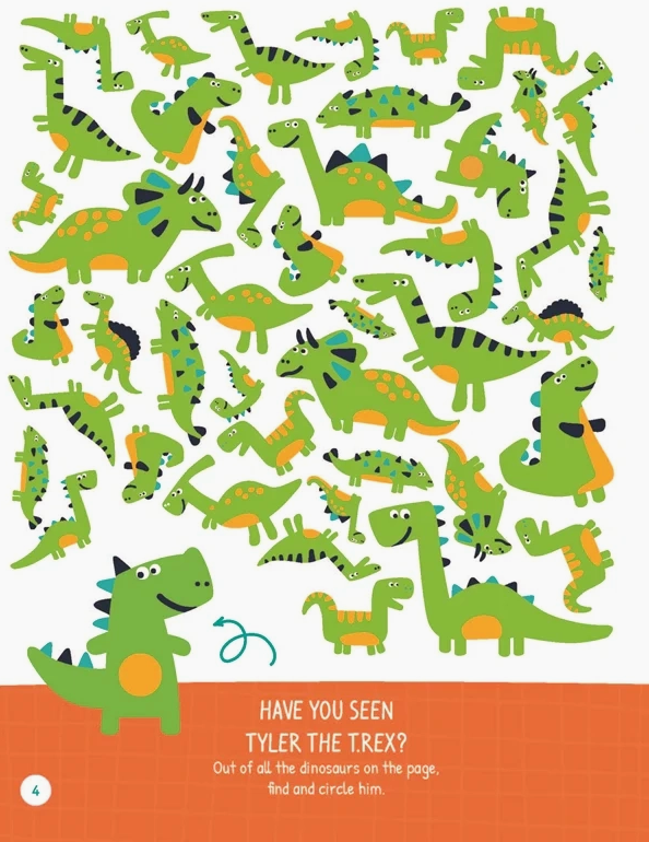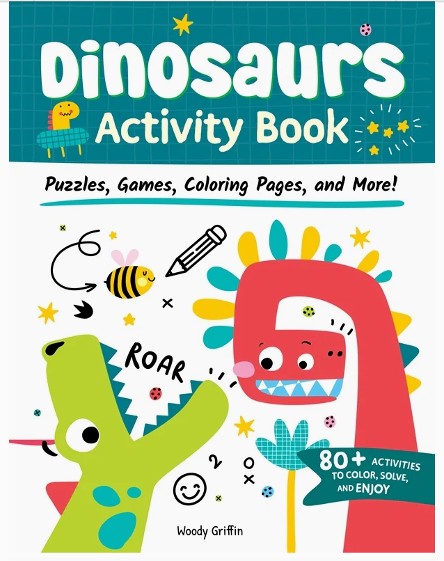 The Dinosaurs Activity Book is filled with 90 engaging and entertaining games and puzzles for children ages 6-10. Playful illustrations of silly dinosaurs, ice-cream cones, balloons, fruits, and veggies are showcased throughout. Games and puzzles include a simplified variation of Sudoku, labyrinths, seek-and-find, mazes, word searches, coloring page activities, spot-the-difference, find the shadow, and learn to draw. Perforated pages for displaying when complete. 96 Pages
