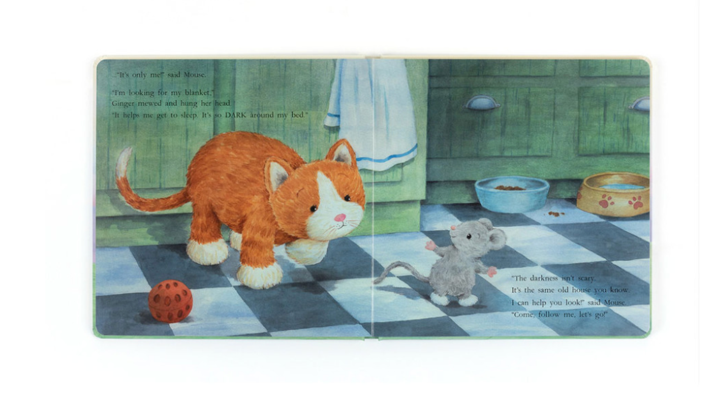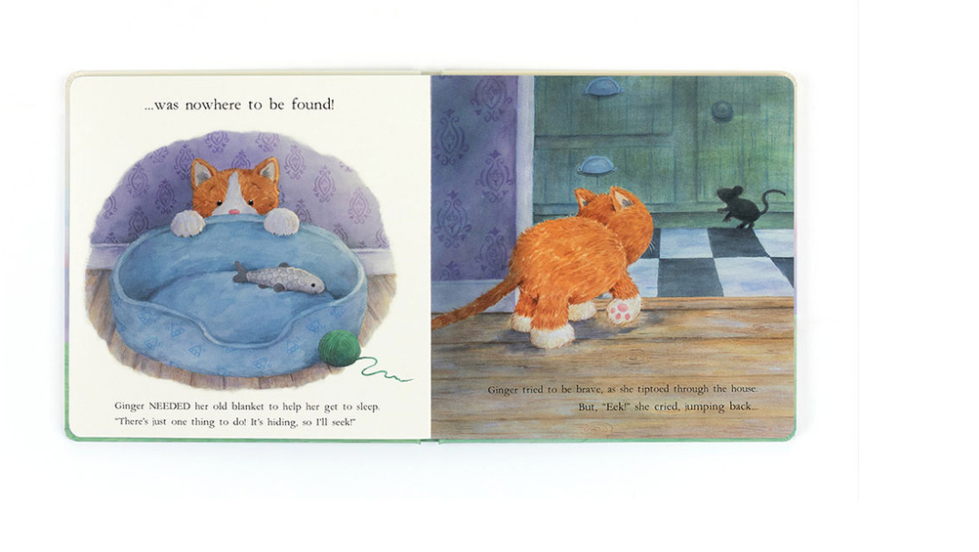 Jelly Cat book! Ginger, the Courageous Kitten isn’t scared of anything, except the dark. Join Ginger as she hunts for her special blankie, overcomes her fear, and learns about being courageous in times of need. The perfect bedtime story with stunning illustrations.