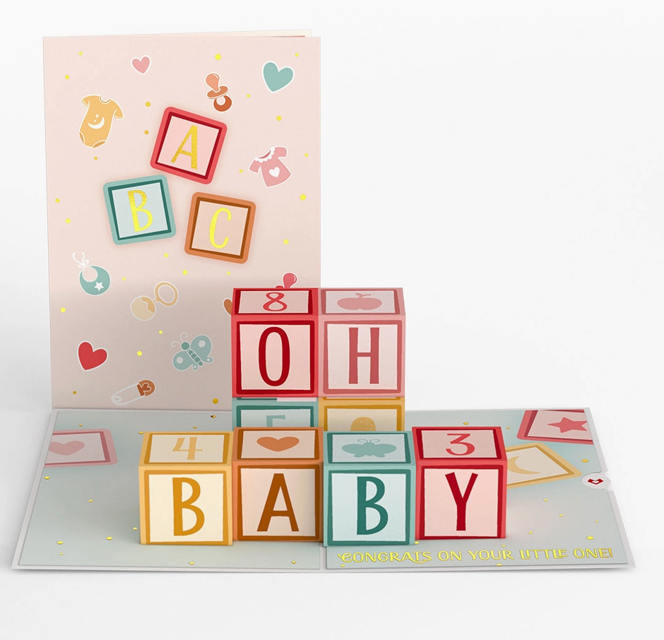 The Oh Baby! Congrats Pop-Up Card is 5" X 7"