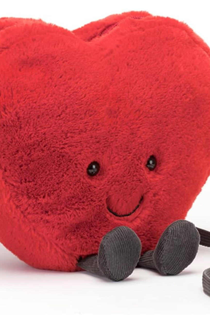 Every day can be Valentine’s with Amuseable Heart Bag! This huggable heart has a soft scarlet fur and plenty of room to hold all things you love. With a strong, cross body webbing strap, wiggly cord boots and a cheerful smile, this Bonny bag shows storing is caring! Strap length 117cm