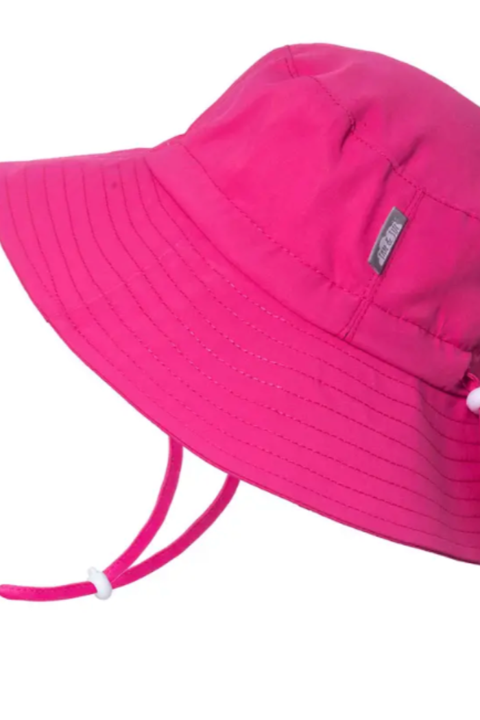 The UV protection from our Aqua-Dry Bucket Hat comes from the weave of the fabric and construction of the hat. This bucket style is perfect for waterplay or the unexpected rain shower, with quick-drying water-repellent fabric. Rated UPF 50+ and safe for toddlers with no harmful chemicals, dyes, or solutions added.