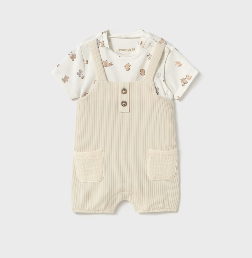 This Baby Simulated Dungaree romper is thoughtfully designed for newborns, combining practical features with stylish details. Crafted with a short-sleeve silhouette, it features a faux bib design that creates a charming layered look without added bulk. The crossover neckline and full side opening with snap button closures ensure effortless dressing and undressing, ideal for delicate newborn skin and quick changes. Made from soft, breathable fabric, this romper provides comfort throughout the day while maintaining a polished appearance. Perfect for everyday wear, it offers both functionality and a refined aesthetic for your baby’s wardrobe.