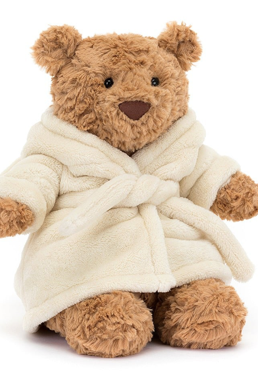 Bartholomew Bear is doing Self-Care Sunday. And Monday. And Tuesday. Our most-loved bear knows how to relax this spring-time, with his tousled fur wrapped in a bunny-ears, fleece-soft, bathrobe. Flop down together, share some cocoa and nuzzle that chunky praline nose.