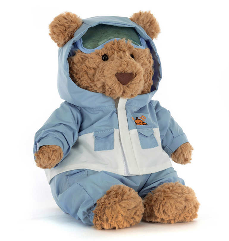 Bartholomew Bear has discovered snowboarding. Sort of. He’s mostly discovered the outfits.