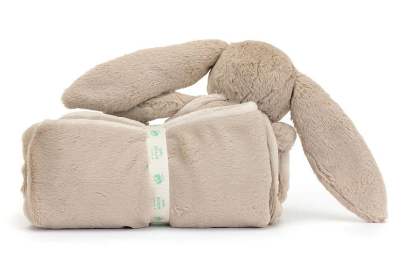 The Bashful Silver Bunny Blankie combines our most loved Bashful Bunny character’s long lop ears, pink suedette nose, embroidery eyes and soft squashy paws with a blankie made from the same cloud soft, silver-grey colored fur in recycled fibers. Neatly rolled and tied with a Baby Jellycat grosgrain ribbon, this is an exquisite gift of endless comfort and timeless charm