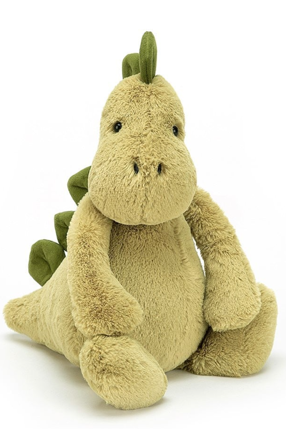 Bashful Dino is making history! Soft, not scaly, this mossy matey has chunky stomper feet, a snuggly snout and a fine squishy spines from head to tail.
