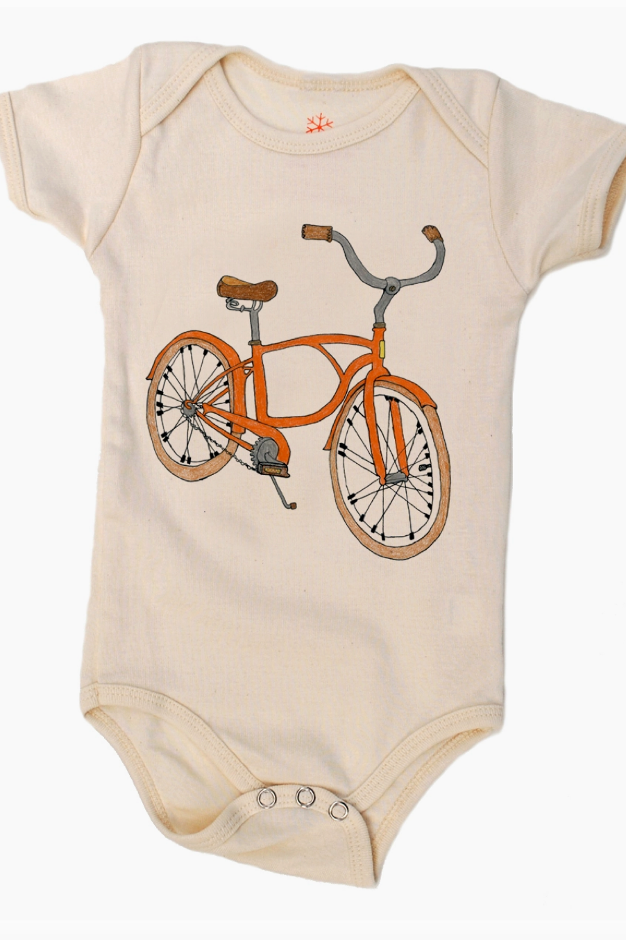 Introducing the Beach Cruiser Baby Organic Onesie, a perfect blend of comfort and style for your little one. Crafted with care, this onesie is tailored from 100% organic cotton, ensuring your baby's delicate skin is wrapped in the softness it deserves.