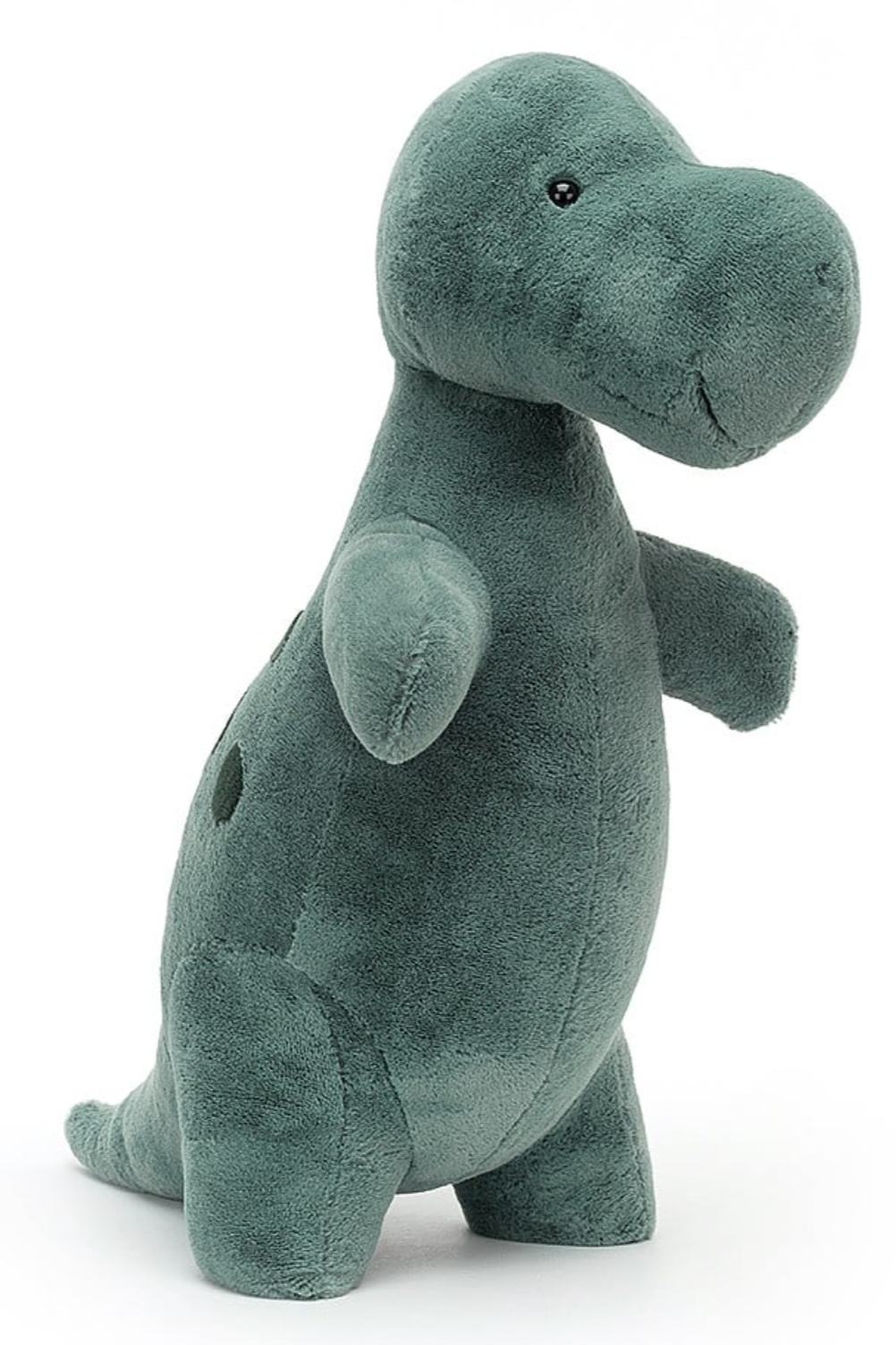 A sturdy stomper with short squishy paws, Big Spottie T-Rex is simply rawrrrsome! Mossy green with a pudgy tummy, stubby legs and a squiggly tail, this Dino has gorgeous dark geez spots.
