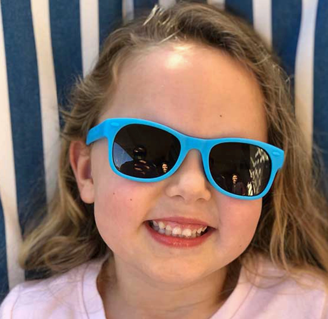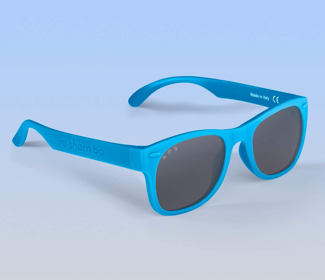 Our blue "Zack Morris" sunglasses with polarized lenses: + 100% UVA/B/C protection and shatter resistant, with added glare reduction to reduce eye strain and protect your eyes. + Made in Italy like your designer shades, and assembled in USA. + Nearly indestructible: we offer a full damage and lens replacement guarantee. + Certified BPA, lead, and latex free. Small parts tested as safe for babies.