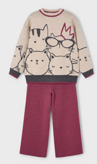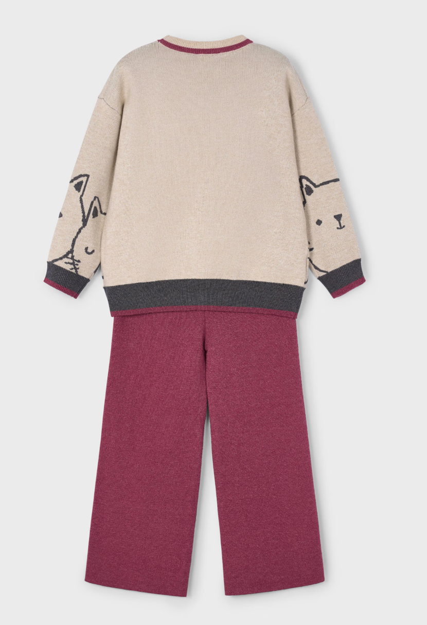 Contains recycled polyester. Matching sweater and pants set for girls.
