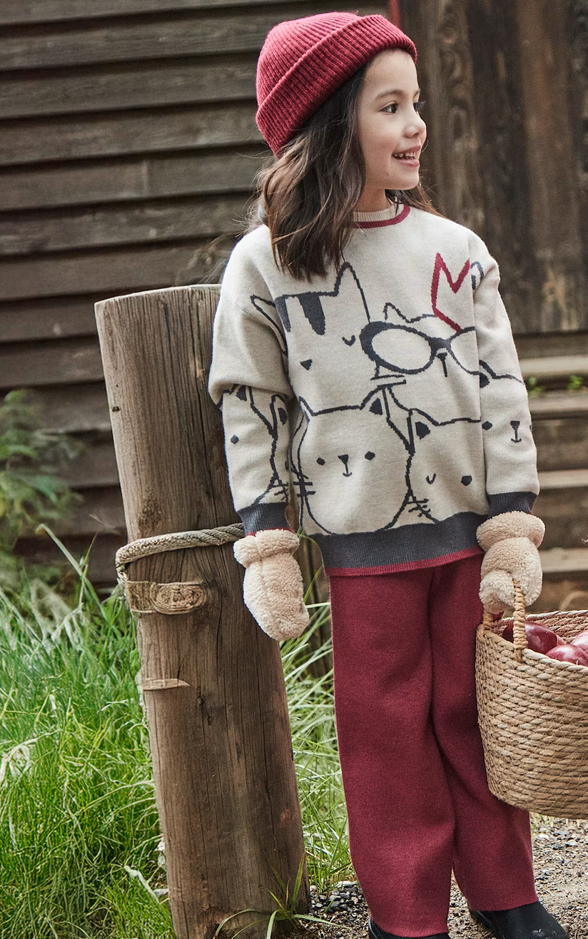 Sweater relaxed fit for girls. Made from knitted fabric. Decorative elements: Ribbed detailing. Intarsia woven design technique.