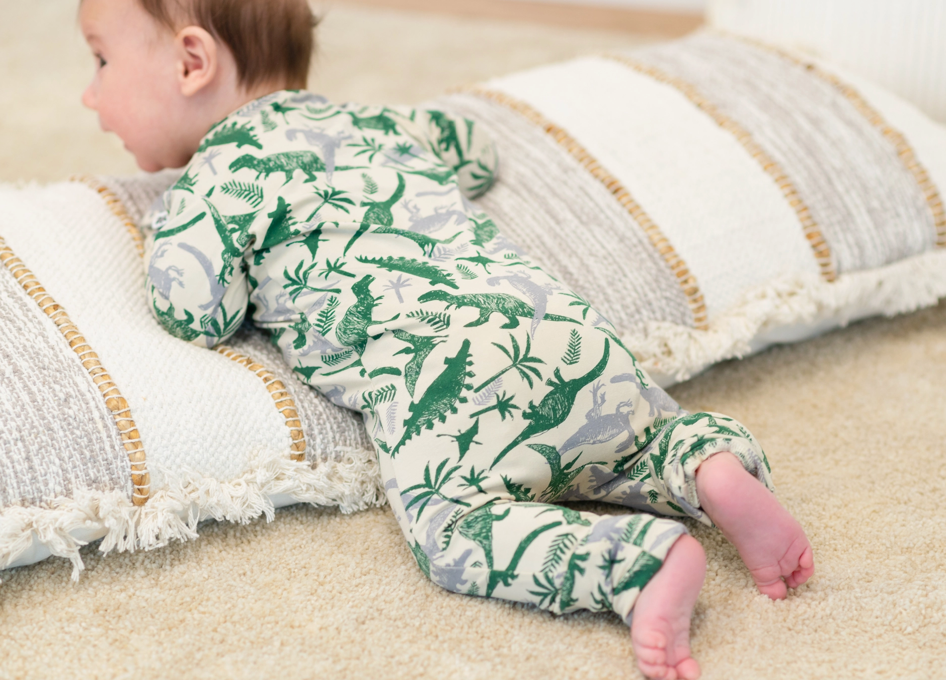 Made with the softest bamboo fabric ever, this will be your go-to romper! 2 way zip for easy changing Foldover legs and foldover cuff arms Flexible for active lifestyles Safe for sensitive skin