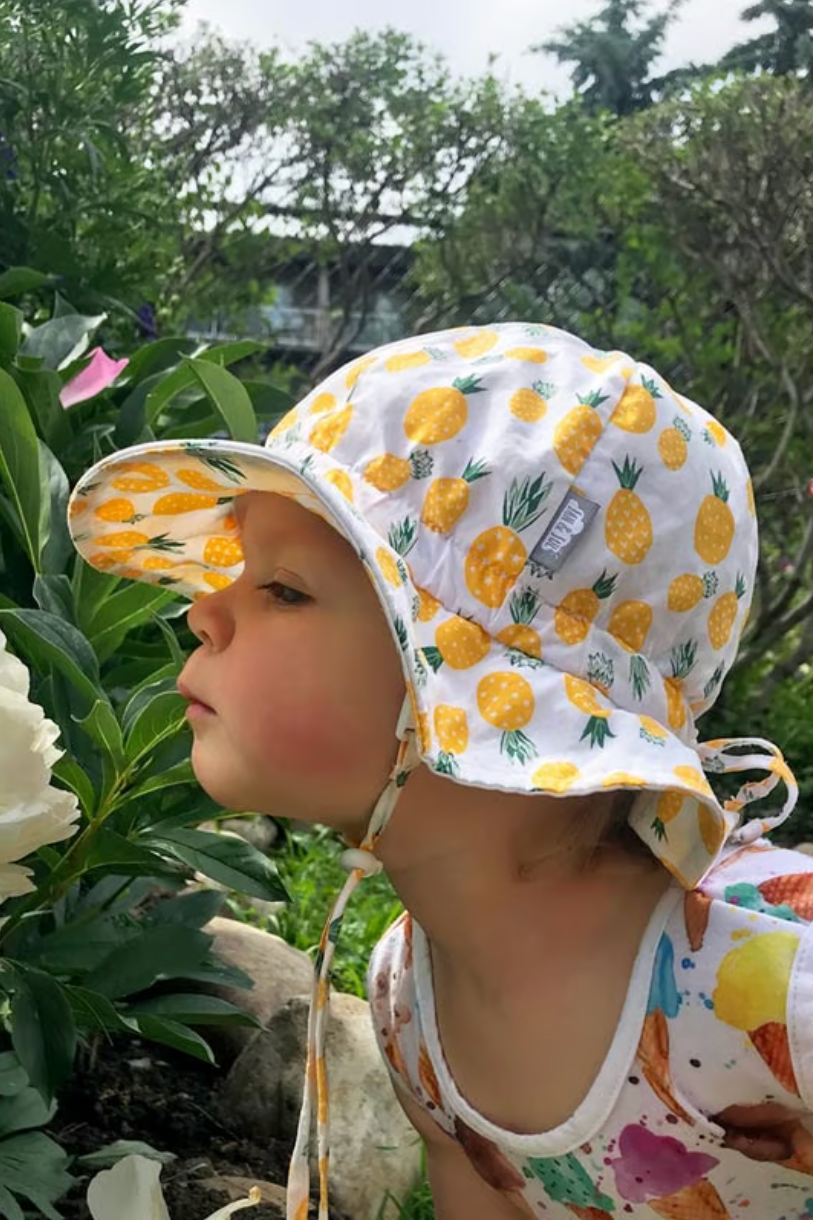 Jan & Jul's Gro-With-Me® adjustable sun hats grow with your child so they can wear it for longer, thanks to a fully adjustable head drawstring and adjustable chinstrap. The wide brim of our Cotton Floppy Hats is designed to stay up in the front and “flop” to shade the neck in the back.