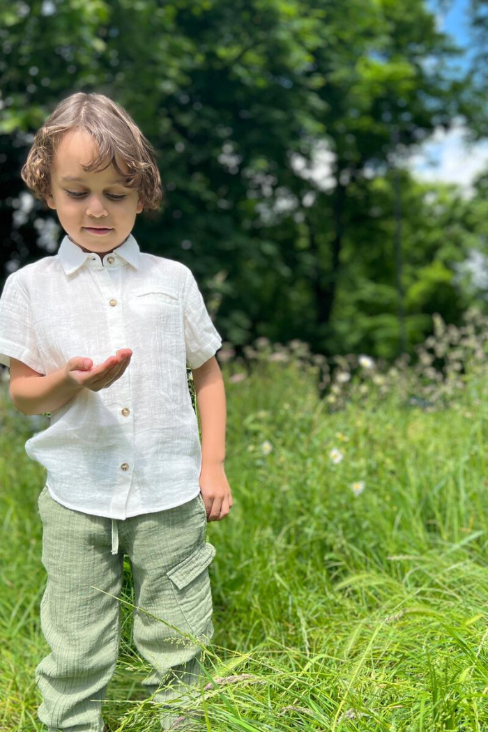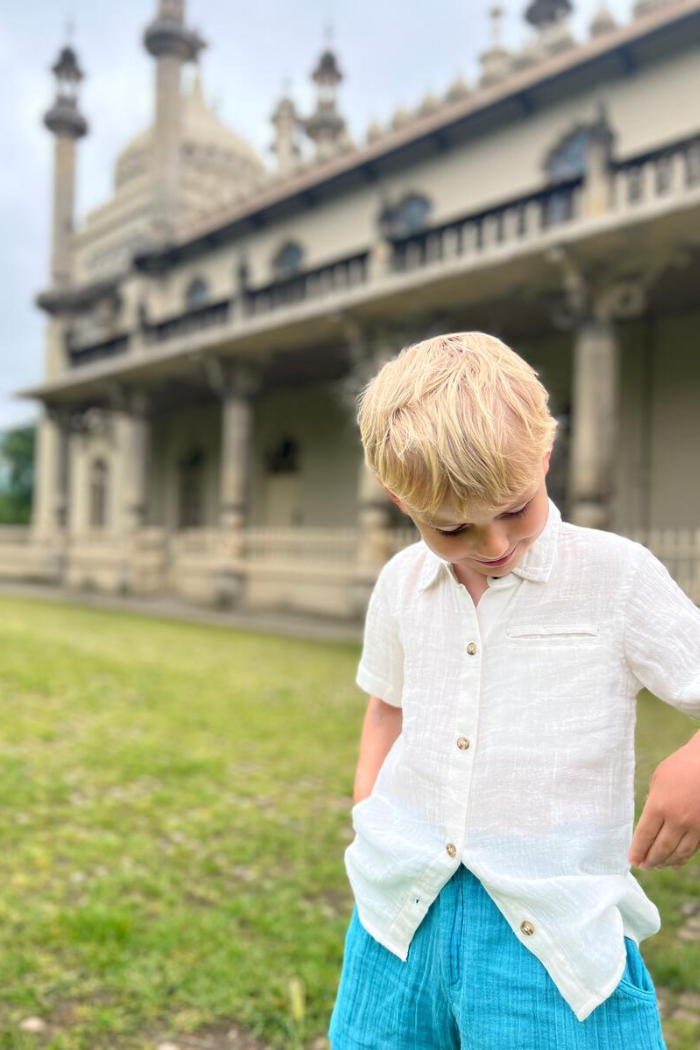 He will keep cool and look smart in this short sleeved multi-stripe shirt. In relaxed distressed gauze.