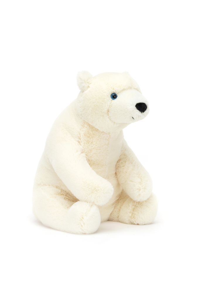 Elwin Polar Bear is heavenly to hug with so-soft marshmallow fur. This mighty matey is flumpy and dreamy, with a rumpled tum and squeezable paws. With bright blue eyes, neat wee ears and a snuffly snoot, this bear is as sweet as ice-cream. Enjoys tight hugs and ambles in the snow.