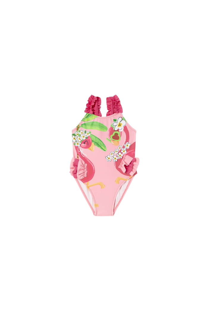 Swimsuit for baby. Elastic fabric for comfort and free movement. Decorative designs.