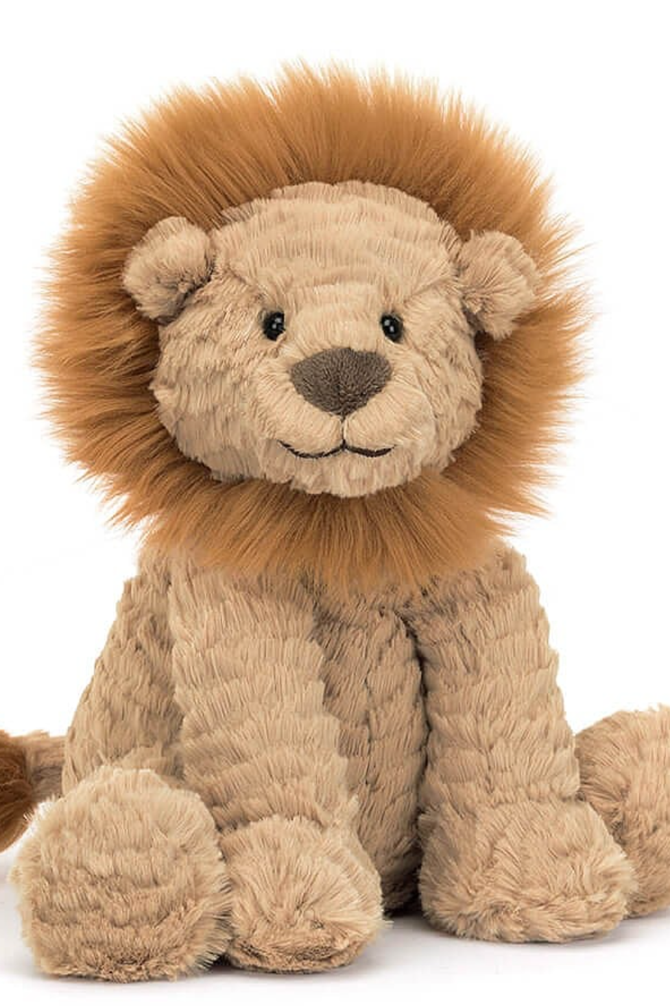 Why has Fuddlewuddle Lion got such gorgeous fudge fur? It is a disguise for going to the beach? We think he tumbled into a tub of toffee, but that doesn’t explain his lovely amber mane! This squidgy-soft lion is silky and sweet.