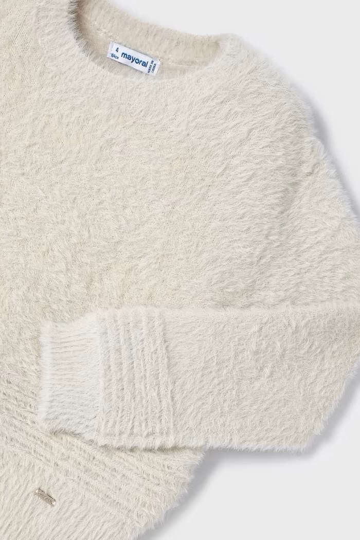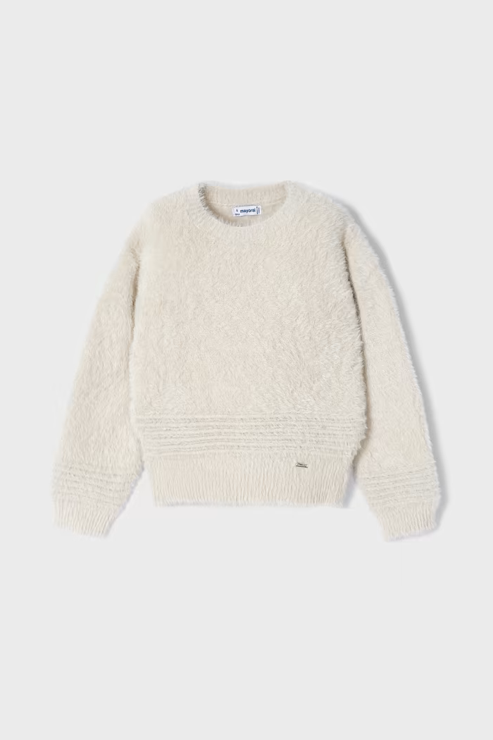 Sweater for girl. Round neckline. Soft and smooth outer faux fur fabric.