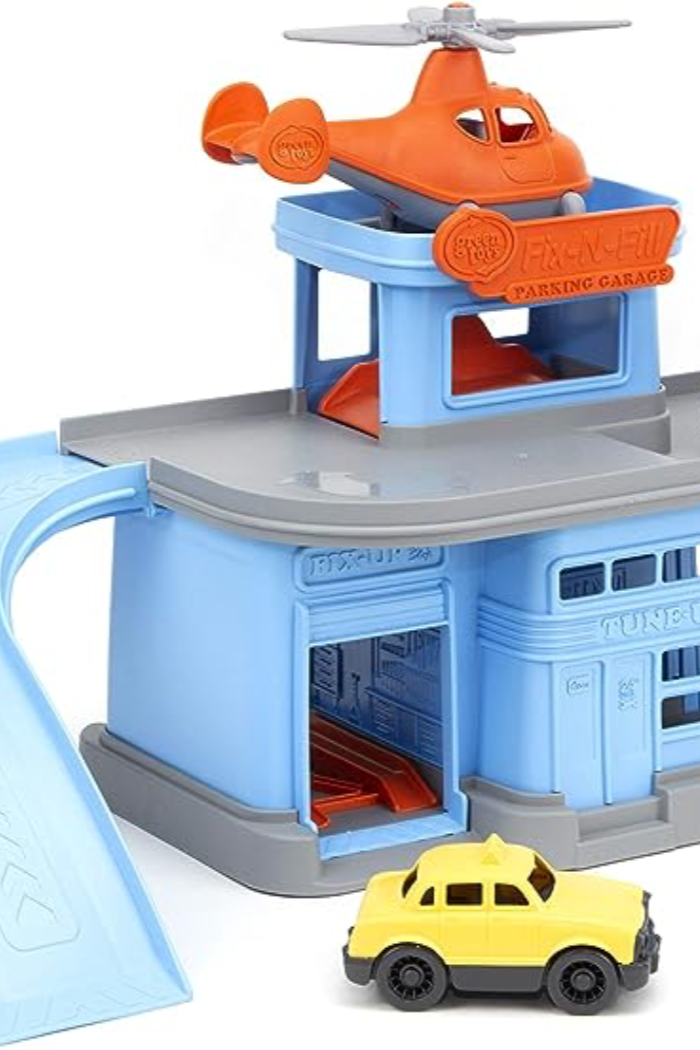 Green toy parking garage for sizes 3-8. This is a 5 piece set…. Many hours of playin time.