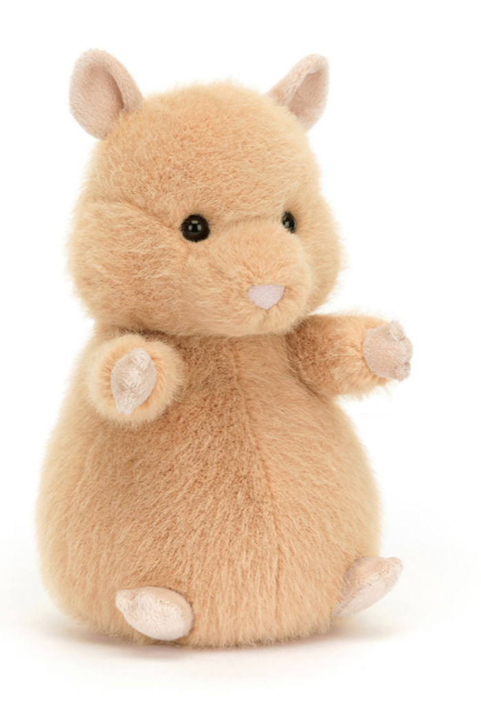 Hank Hamster is Gordy Guinea Pig's pal, and just as divinely podgy. This fuzzy hamster has apricot fur and gently folded peach ears. With soft stitch claws, an embroidered nose, chubby cheeks and curious eyes, Hank is a treasure for your desk or pocket.
