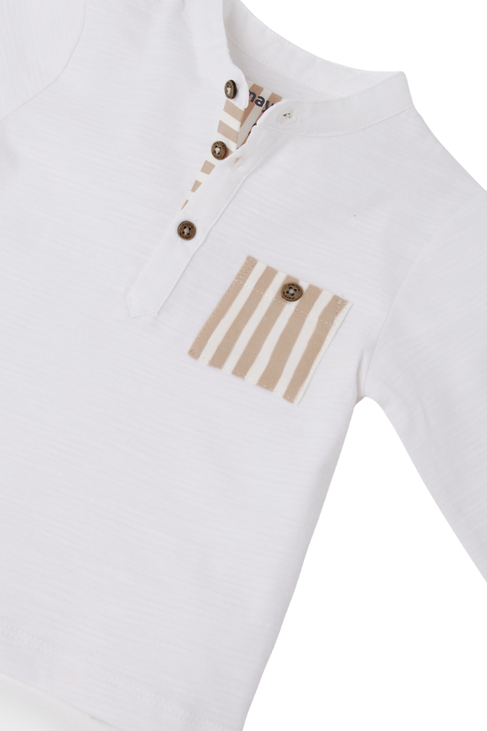 Soft and stylish baby boy top with sleeves able to be buttoned up.