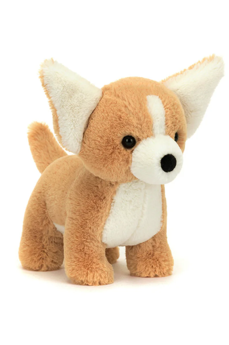 Meet Isobel Chihuahua - while she may have dainty legs, her spunky spirit keeps her ahead of the pack! Her honey fur is dreamy soft, accented by striking vanilla patches, floppy two-tone ears, and a suedette nose. With her bright-eyed gaze, Isobel is always ready for adventure - she's the perfect cuddly companion for road trips and beyond!