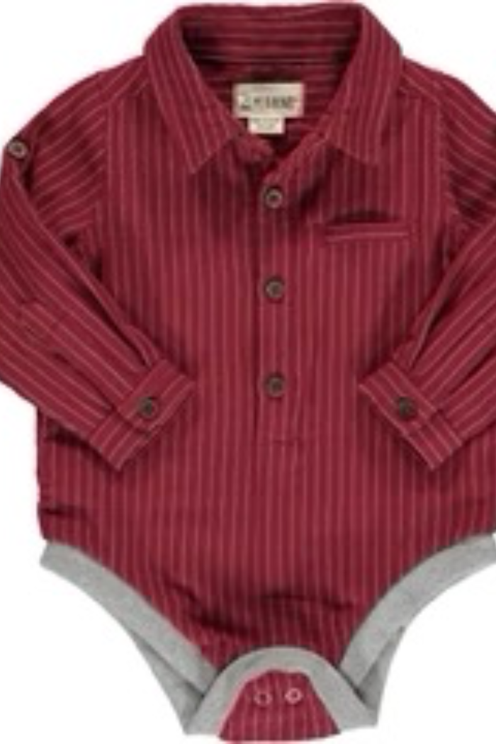 Jasper Onesie Burgundywith Grey Stripes
