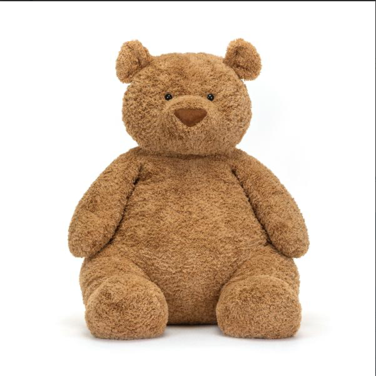 Charming Details: Bartholomew Bear Gigantic features a sweet, embroidered face with a gentle smile and big, floppy ears that add to its lovable character. The bear’s chunky arms and legs are designed for the ultimate hug, and its distinctive, soft nose and round belly make it extra endearing.