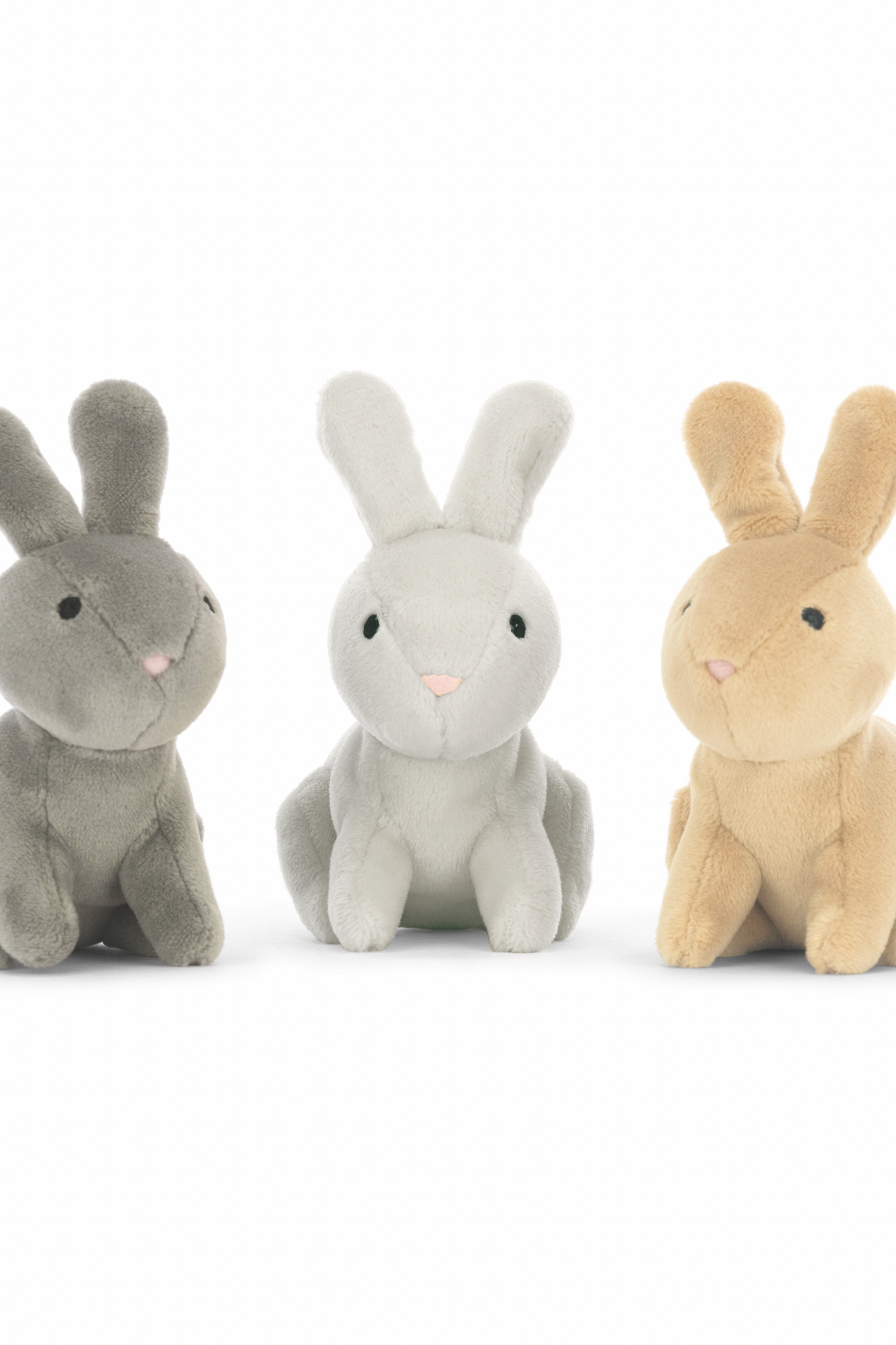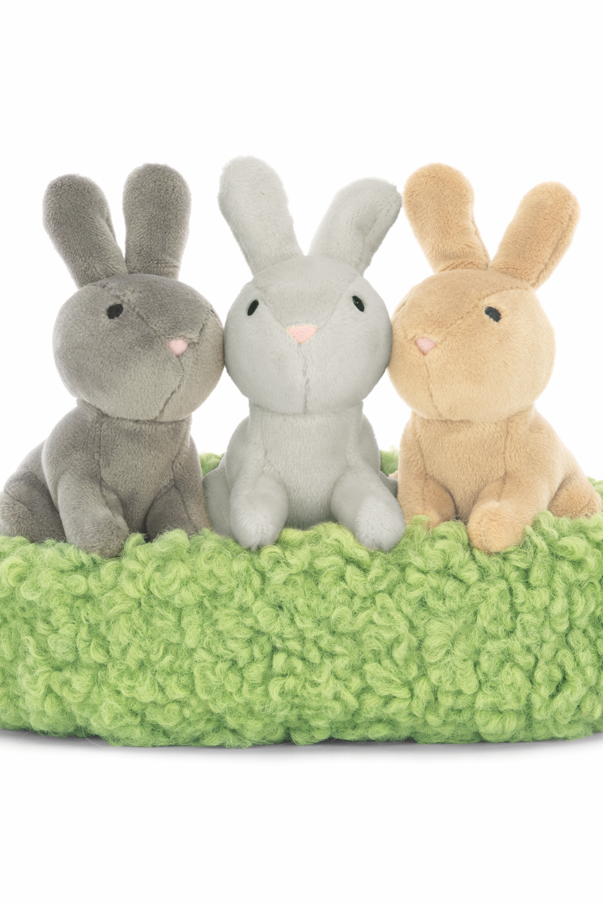 What's better than one cheery bunny? Three, all huddled together! The Nesting Bunnies are a tickly trio, in pebble, vanilla and tawny stretch fur. These perky poppets love to hang out in their fluffy mossy nest! With perky ears, eager expressions and snowy bobtails, this loveable litter can't wait to meet you!