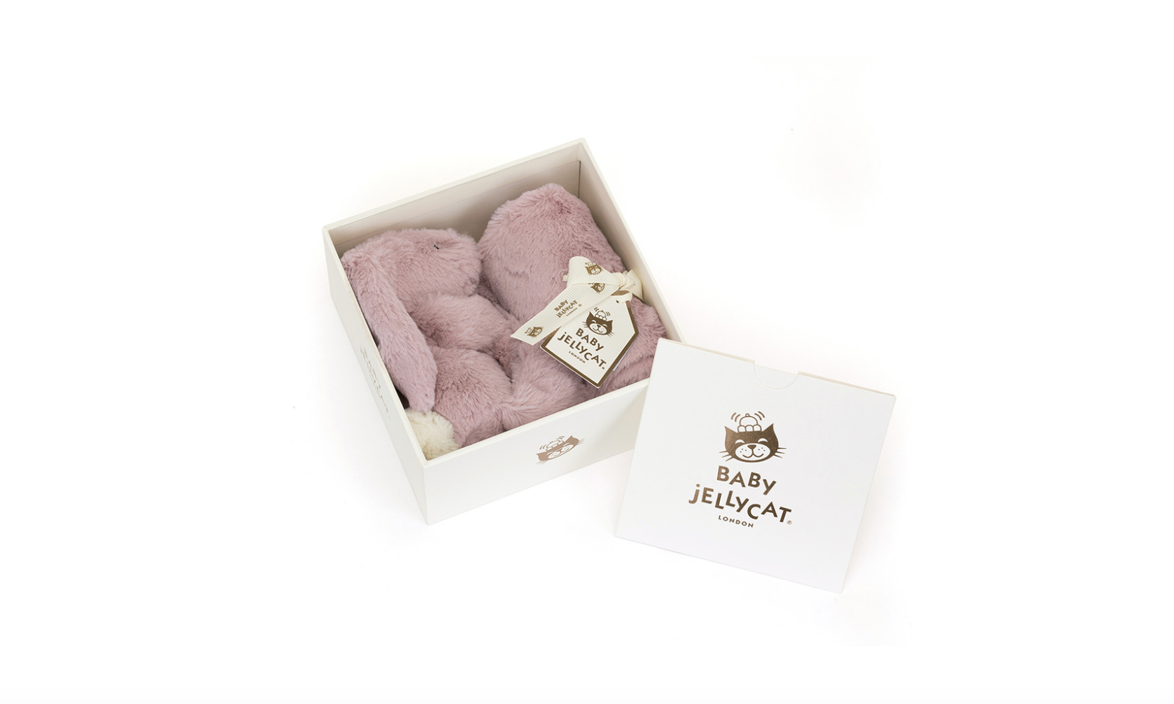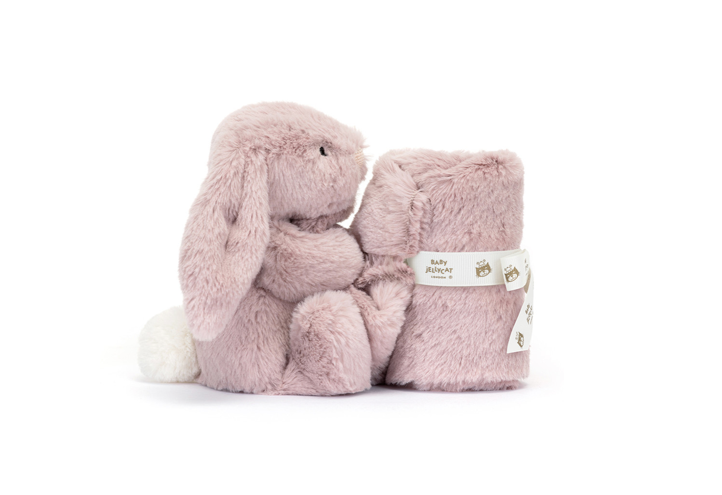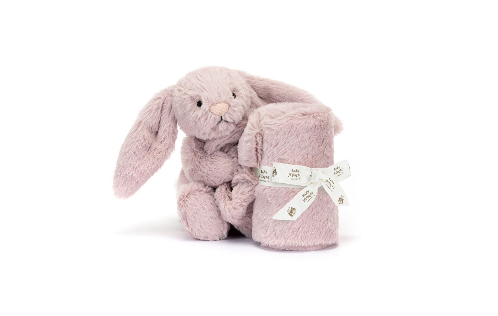 JellyCat Bashful Luxe Bunny Rosa Soother. Plush blanket and bunny all wrapped in a gift box. Perfect gift for a new baby boy or baby girl.