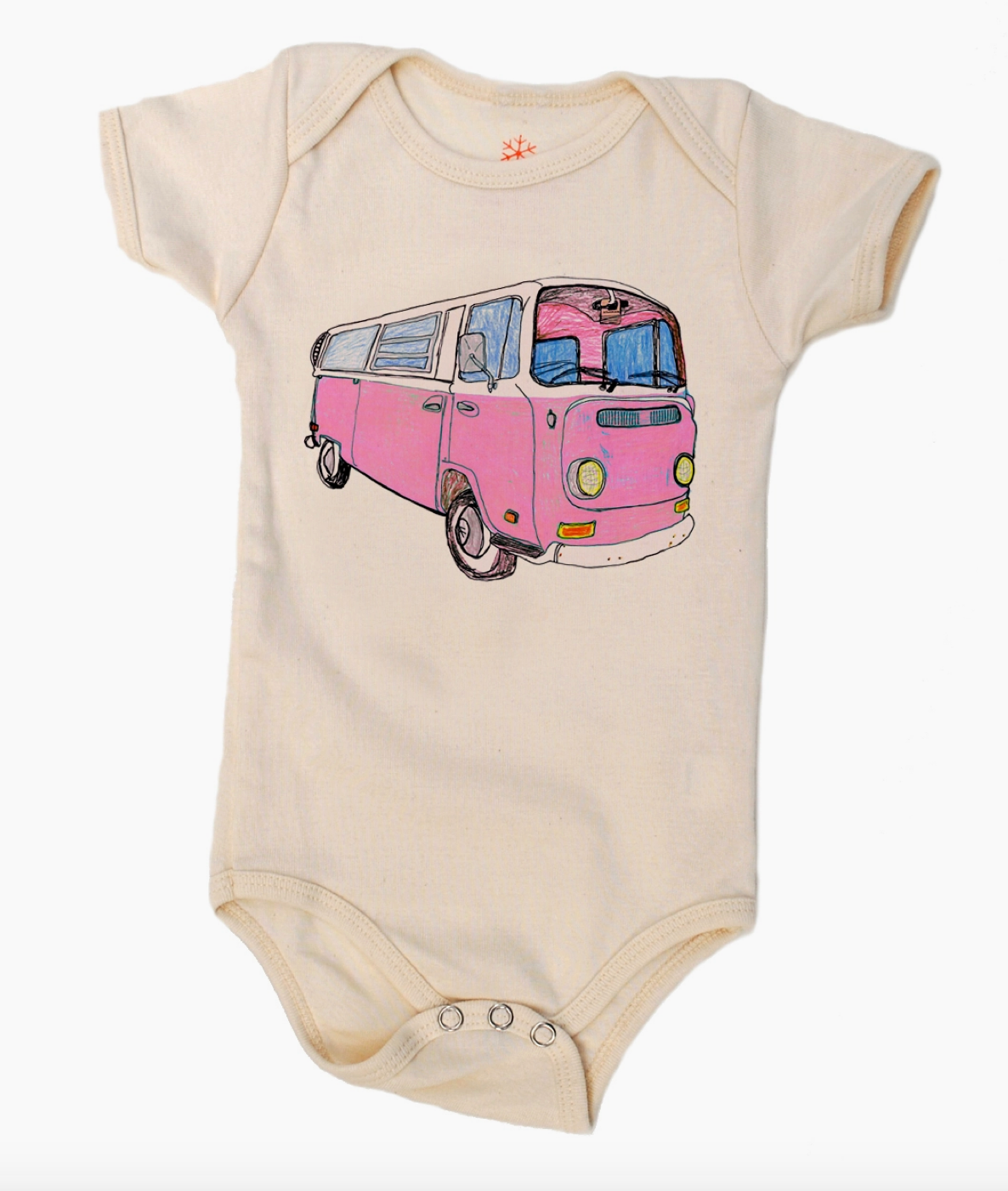 The PINK version of the popular Venice Wheels design. 100% organic cotton. Natural. Soft and comfy tag less apparel. Designed in Venice California.