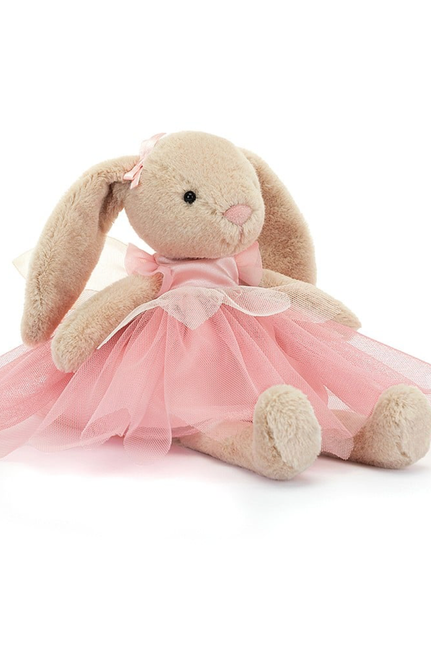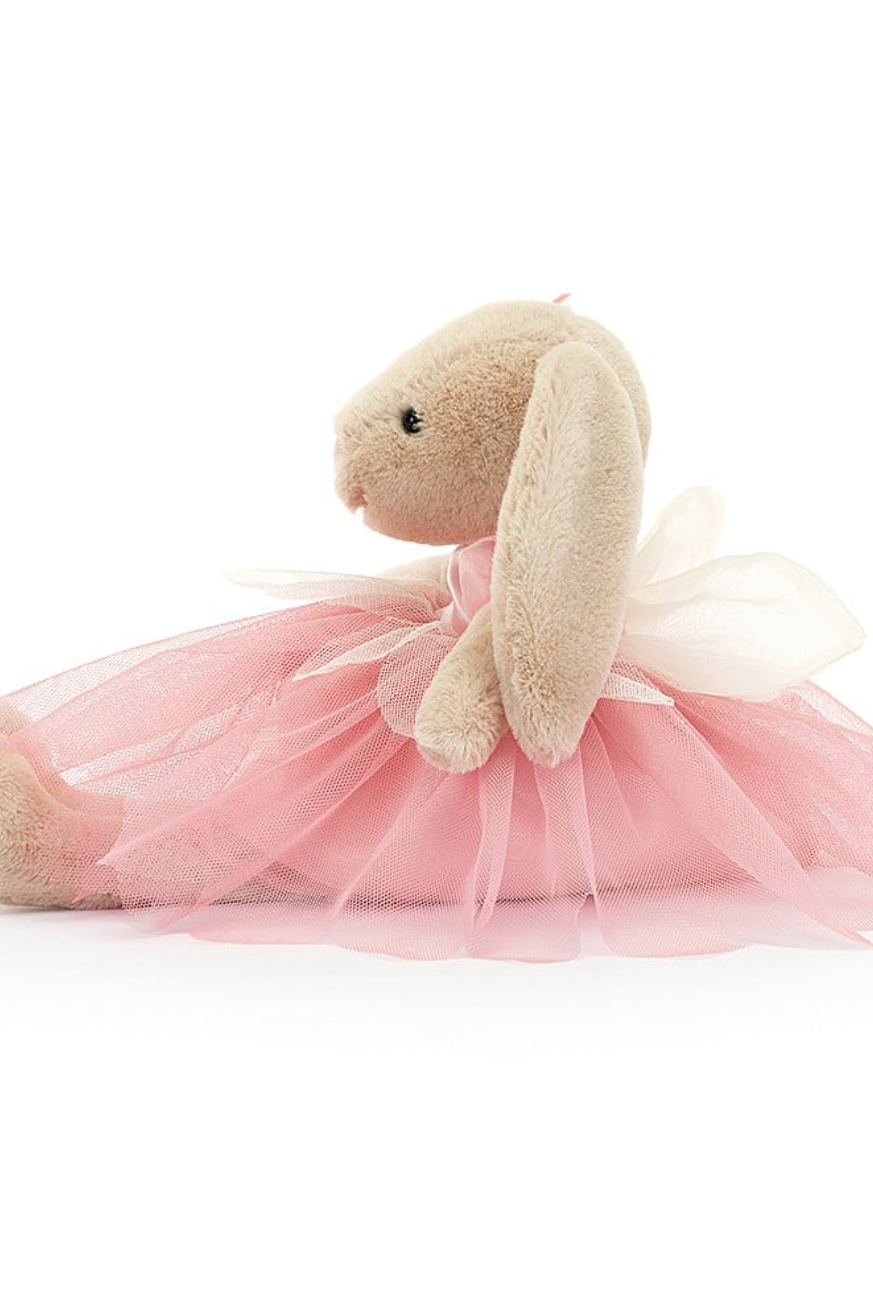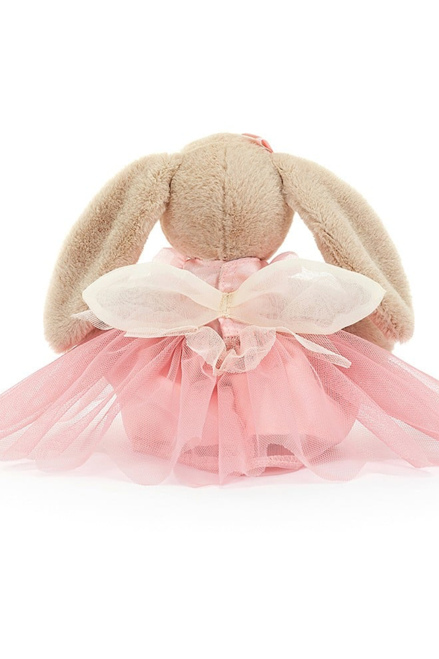 Lottie Bunny Fairy is so excited to mark her garden debut! This flopsy-eared dancer wears ribbons on her ears and a beautiful ballet costume. With a pink satin bodice, butterfly sleeves, petal peplum and three-layer mesh tutu, trimmed with a satin bow, it's the perfect outfit for a flower fairy!